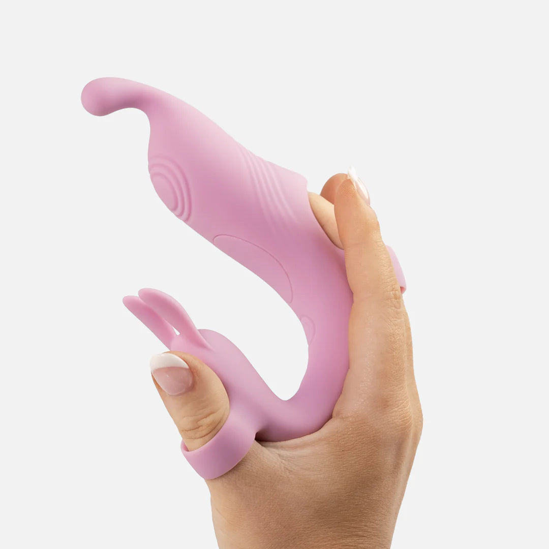 Great solo or for couples, this unique rabbit vibrator is perfect for those that want to up their fingering game. Two The Point features two silicone loops that allow fingers to be slid into the toy, turning the wearer’s hand into a rabbit vibrator with 3 speeds and 7 patterns of vibration in its dual motors.